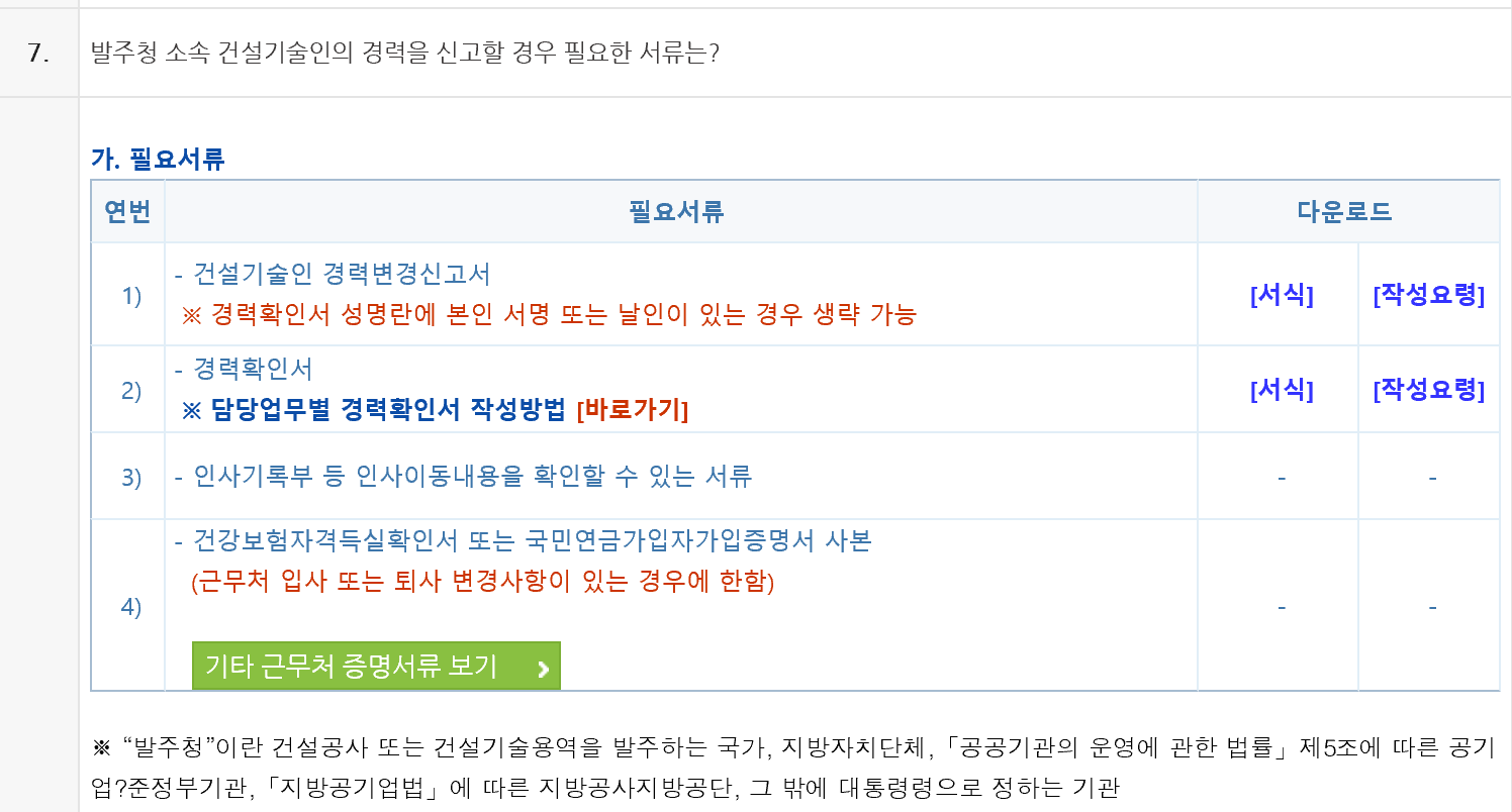 3. 경력확인서: 나는 공공기관 소속이라 발주청인데, 경력확인서는 발주청에서 해주는 것으로 되어있다. 그런데, 발주청 소속인 내가 스스로 경력확인을 해도 되는 것인지? 이것은 전화해서 문의해봐야 하겠다.
